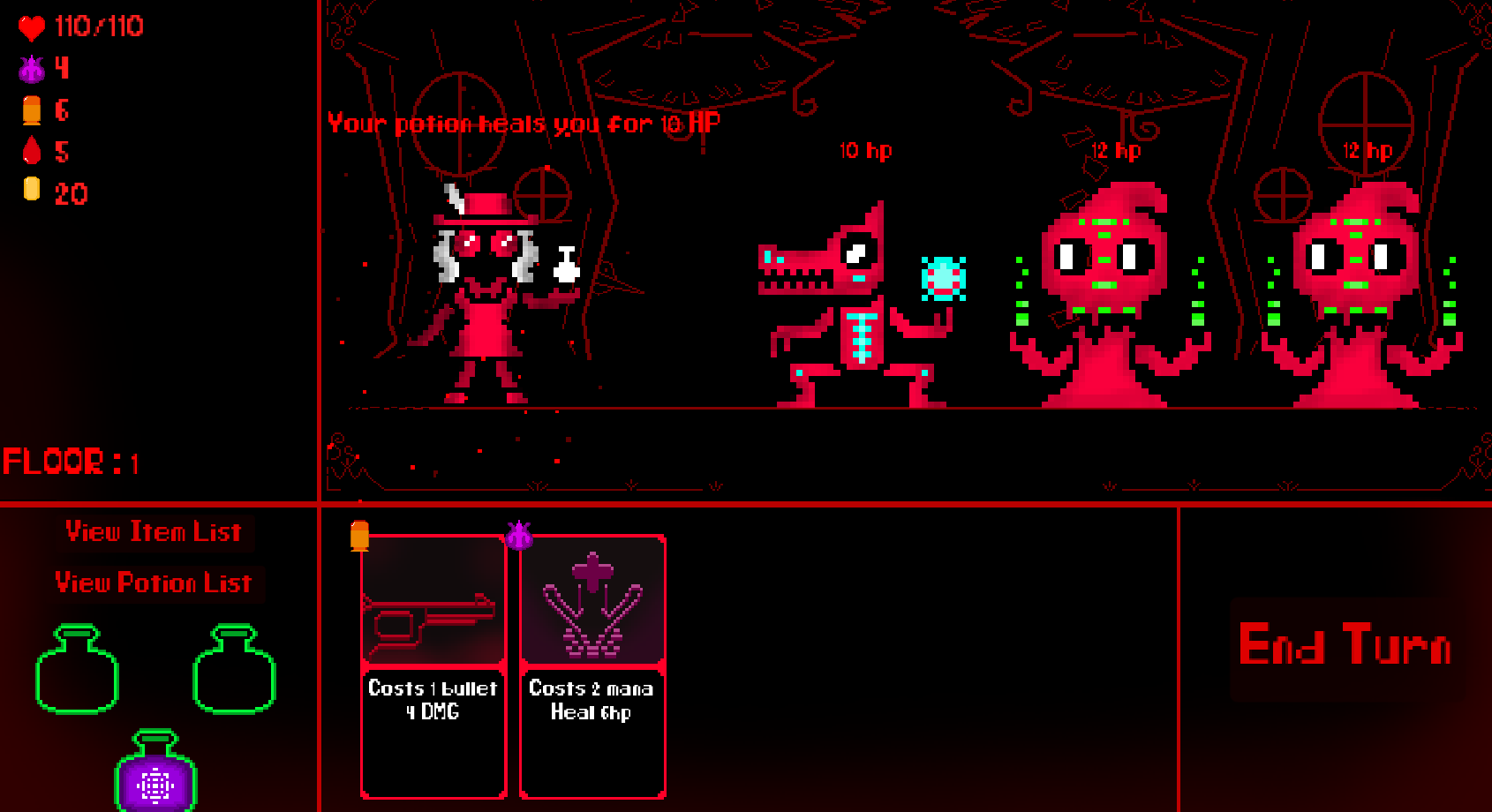 POTIONS: Consumable items that have a one time effect during a fight, and don't come back. These add an "aftermath" to your fights as opposed to before.